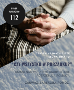 Jeśli zauważysz kogoś w trudnej sytuacji pogodowej, nie wahaj się wezwać pomocy. Informacje o osobach przebywających w warunkach zagrażających ich zdrowiu należy niezwłocznie przekazywać pod numer alarmowy 112 lub poinformować Ośrodek Pomocy Społecznej w Bobowej – 18 351 44 56